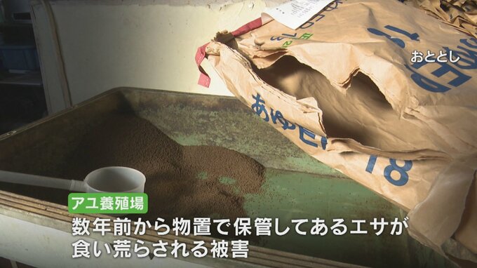 こちらの養殖場では、数年前から物置で保管してあるアユのエサがアライグマに食い荒らされる被害が相次いでいました。