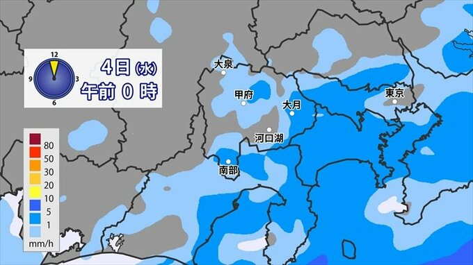 あさって水曜日の午前中は、東部富士五湖では東寄りの湿った空気の影響を受けやすくなりますので晴れるタイミングが遅くなると見ています。中西部ほど晴れそうです。