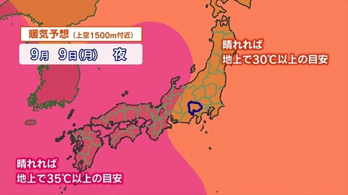 これがあす、あさってはまだかからないんですが、金曜日になってくるとこの地上で35℃以上の目安が、山梨県内にもかかってくるんです。
