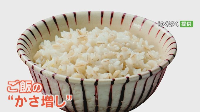 50gのスティック1本を1合のコメに混ぜると1.5合に「かさ増し」され、食物繊維も豊富という「もち麦」は、他の効果もあります。