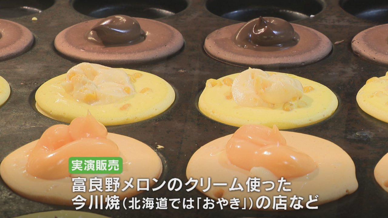 また、富良野メロンのクリームを使った今川焼、北海道でいう「おやき」の店などでは実演販売も行われています。
