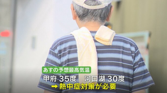12日も甲府で35度、河口湖で30度の厳しい残暑が予想され、気象台はこめまな水分補給など熱中症への対策を呼びかけています。