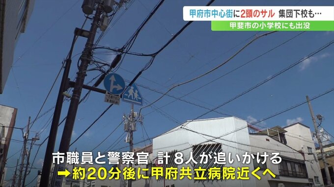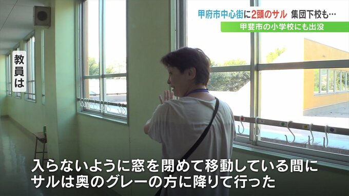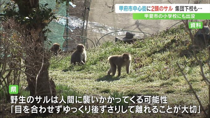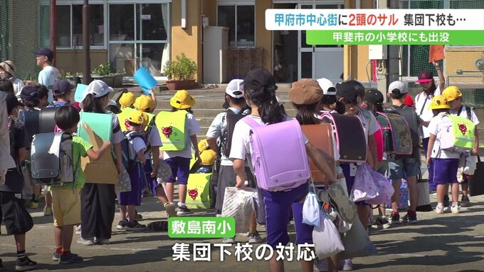サルは甲斐市の小学校にも出没し、学校は集団下校の措置をとりました。