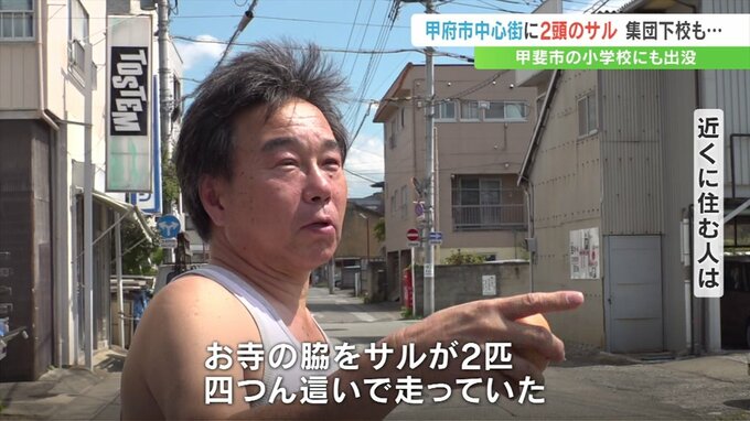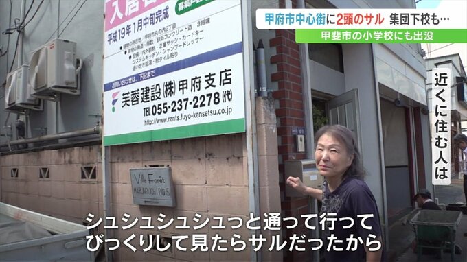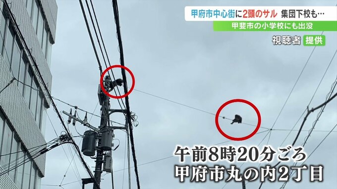 13日の朝、甲府市の中心街で2頭のサルが目撃されました。