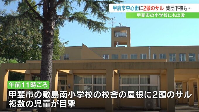 午前11時ごろ甲斐市の敷島南小学校の校舎の屋根の上に2頭でいるところを複数の児童が目撃しました。