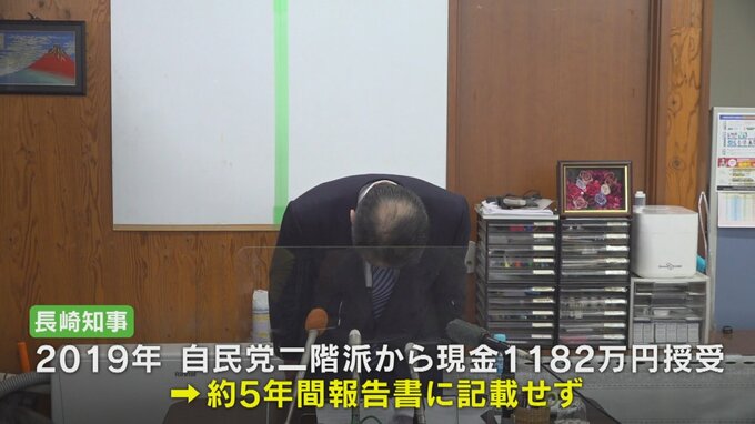 長崎知事が2019年自民党二階派から現金1182万円を受け取りながらおよそ5年間資金管理団体の収支報告書に記載していなかった問題。