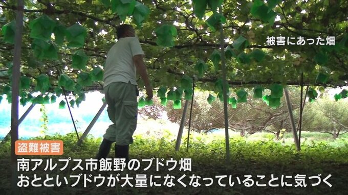 被害にあったのは、南アルプス市飯野のブドウ畑で、3日午後3時頃、ブドウが大量になくなっているのに気づき通報しました。
