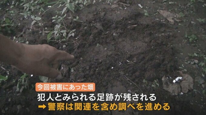 また今回被害にあった畑には犯人とみられる足跡が残されていて、警察は関連を含め調べを進めています。