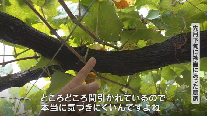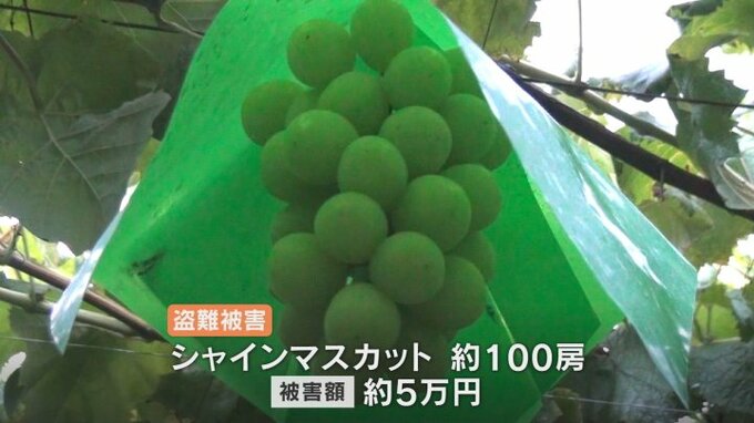 盗まれたのは、収穫前の高級品種、シャインマスカットおよそ100房で、被害額は5万円に上ります。