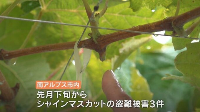またしても果物の盗難です。3日、山梨県南アルプス市でシャインマスカットおよそ100房が盗まれました。