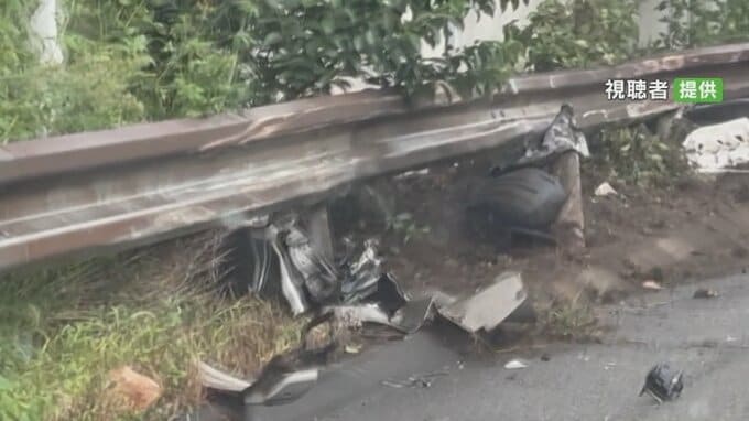警察によりますと事故は下り線の追い越し車線を走行していた乗用車が左側のガードレールに衝突した後、中央分離帯に衝突して停車しました。