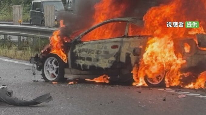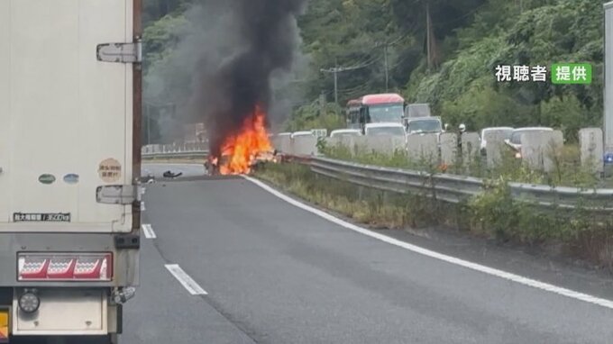 19日午後4時50分ごろ、中央道下り線の相模湖インターと上野原インターの間で乗用車が燃える車両火災がありました。