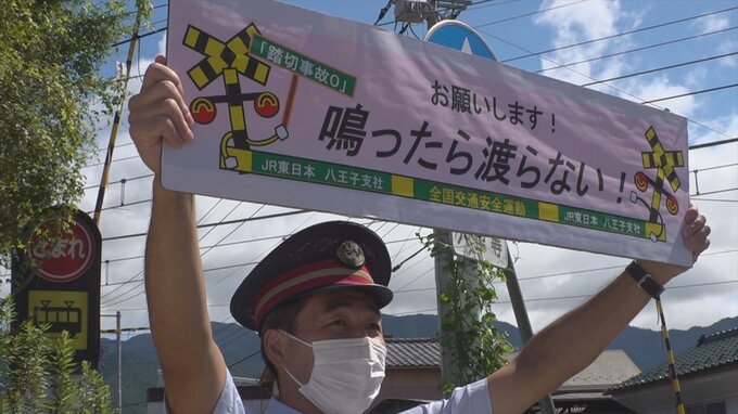 「十分に確認を行った上で安全に横断して」踏切での事故防止 警察と鉄道会社が呼びかけ 2024年9月24日(火) 18:48 国内 山梨県甲州市内の踏切で、警察と鉄道会社が合同で事故の防止を呼び掛ける街頭指導が行われました。この街頭指導は秋の全国交通安全運動の一環として行われ、日下部警察署とJR東日本などから、およそ20人が参加しま…