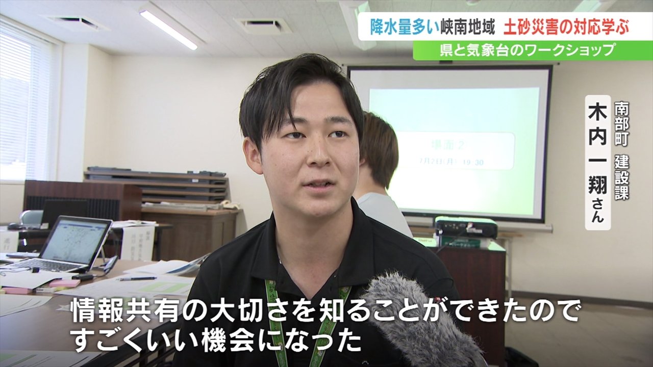 こうした中、24日は年間の降水量が県内で最も多い南部町をはじめとした峡南地域5つの町を対象に土砂災害の対応を学ぶワークショップが開かれました。
