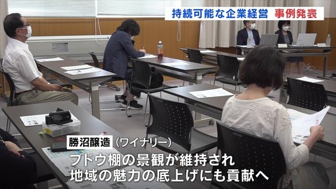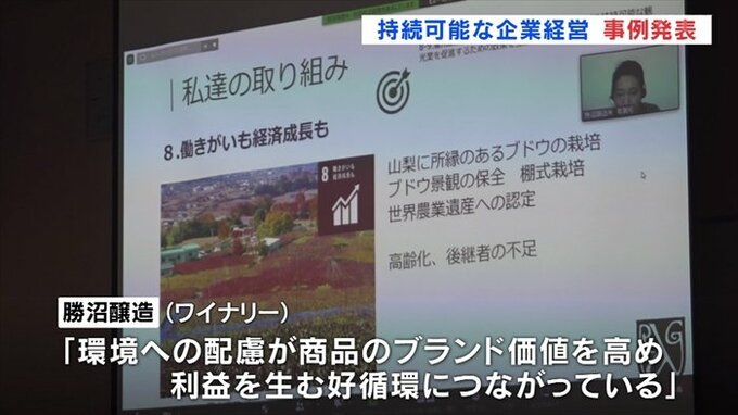 このうちワイナリーの勝沼醸造は原料のブドウに化学肥料を使わないといった環境への配慮が商品のブランド価値を高め、利益を生む好循環につながっていると報告しました。