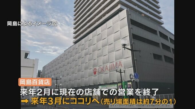 岡島百貨店は2023年2月に現在の店舗での営業を終え、売り場面積を およそ7分の1に縮小して、甲府市の「ココリ」で2023年3月から営業を始める事を発表しています。