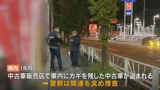 県内では8月も中古車販売店で車内にカギを残したままだった中古車が盗まれる被害があり、手口が似ていることから警察は関連を含め捜査しています。