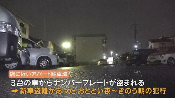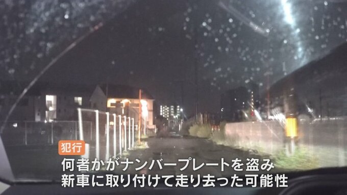捜査関係者によりますと何者かがナンバープレートを盗み、それを新車に取り付けて走り去った可能性があるということです。