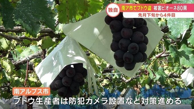 南アルプス市のブドウの生産者は防犯カメラの設置など対策を進めていますが、被害に歯止めはかかっていません。
