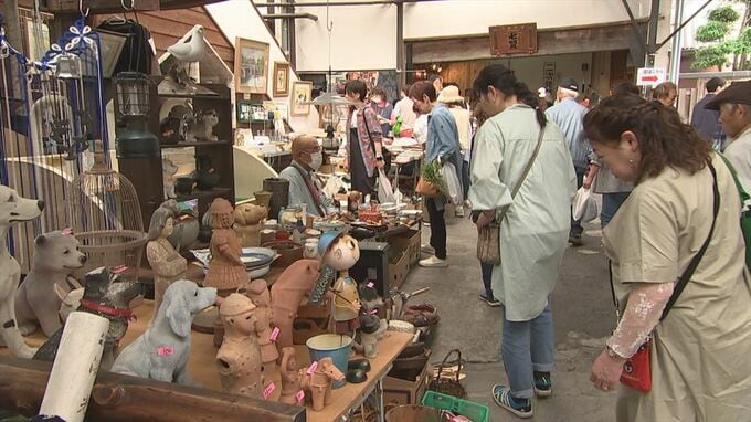 会場には骨董品やクラフト作品など様々なジャンルの店が並び、今年は過去最多となる、およそ350店が軒を連ねています。