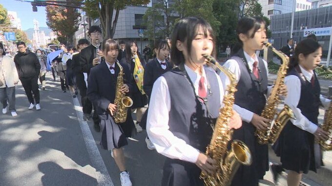 高校生の文化の祭典である山梨県高校芸術文化祭のパレードが甲府市で行われました。