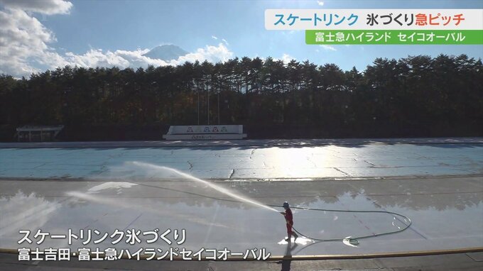 こちらでは今シーズンの営業開始に向けて氷づくりが始まり、スタッフ4人がホースで水をまいています。