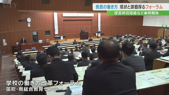 その後、県内4つの学校の校長が働き方改革の取り組み事例を紹介し、このうち大月東小学校は授業時間を45分から40分に短縮して下校時間を早めた結果、下校後の定時までの時間を増やすことができ、教員の時間外勤務が減少したということです。