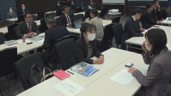 会場には施設ごとにテーブルが並び、愛知県内の旅行業者が施設の概要や魅力、見どころなどについて説明を受けていました。