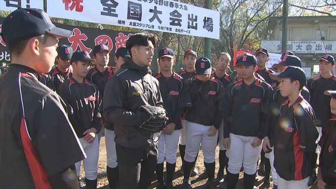 プロ野球のドラフト会議で、楽天から3位指名を受けた山梨県富士川町出身の中込陽翔投手が、11月30日、中学生時代にプレーした北杜市の野球チームを訪れました。