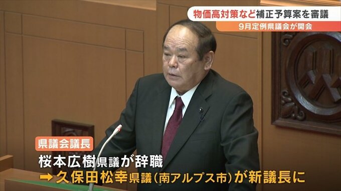 一方、桜本広樹県議の議長辞職に伴う議長選挙が行われ、南アルプス市選出で自由民主党・山梨の久保田松幸県議が新たに山梨県議会議長に就任しました。