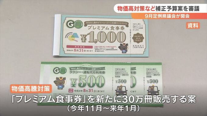 また、物価高対策としては今年11月からの3カ月間、8000円で1万円分の食事券を購入できる「プレミアム食事券」を新たに30万冊販売する案も審議されます。