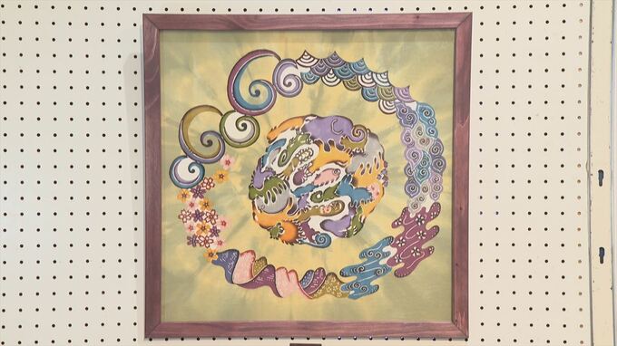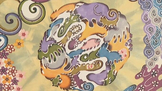 中央市の玉穂生涯学習館には、今 乙黒さんの紅型作品が展示されています。