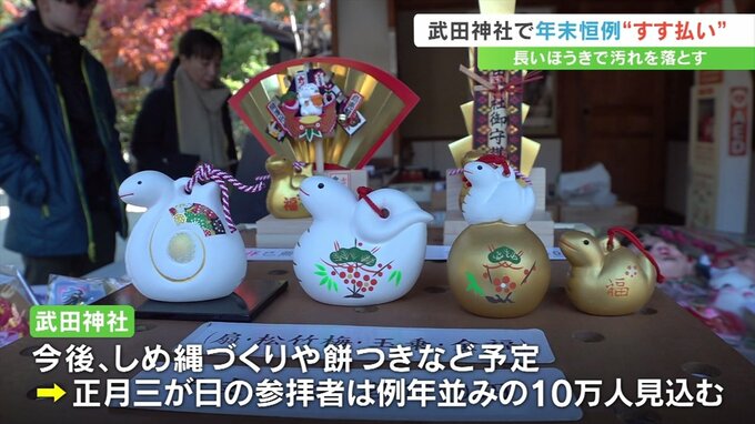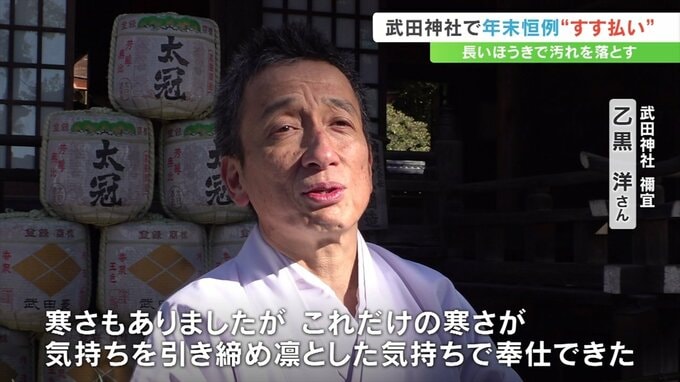 武田神社では新年を迎える準備として毎年この時期にすす払いを行っています。