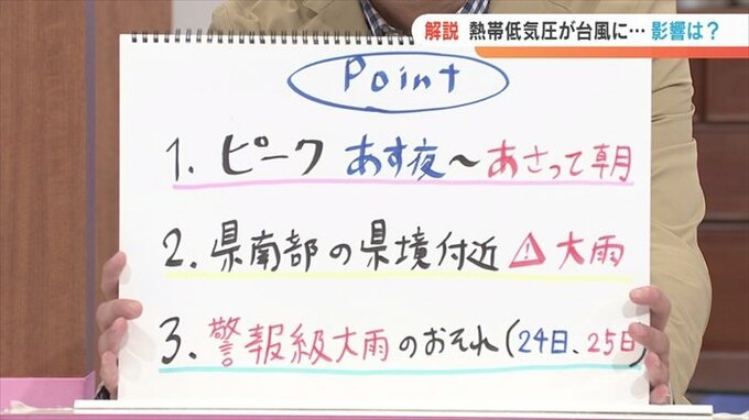そこから県内に近づいてくる形になっています。そこまで発達しない予想となっています。ですから、今回警戒しなければいけないのは、風ではなく雨のみというふうな形で考えています。