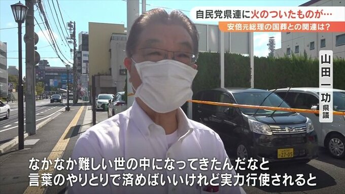 自民党県連に、26日朝早く、可燃物のようなものが投げ込まれました。