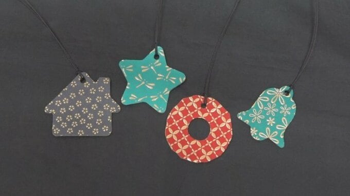 印傳屋上原勇七では印伝の端切れで製作したオリジナルのオーナメントを印傳屋感謝デーの期間中にお取り寄せ購入した人に贈っていて、1枚につき300円を寄付しています。