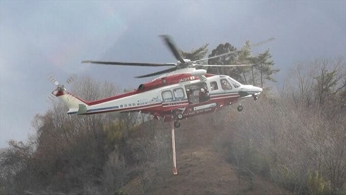 けが人や、付近の建物への延焼は確認されていないものの、28日も鎮火には至っておらず、自衛隊や東京消防庁などのヘリも駆けつけ、火災現場の近くにあるダムから水を運ぶなど消火活動が続けられています。