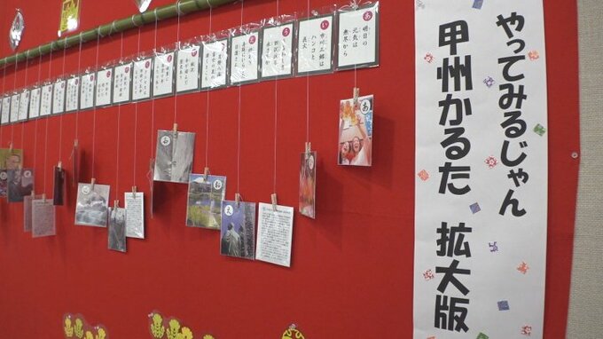 笛吹市の春日居郷土館で開催されている「山梨おもしろかるた展」には、「やってみるじゃん甲州かるた」という郷土かるたが展示されています。
