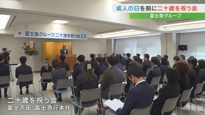 今月13日の成人の日を前に富士吉田市の富士急行で二十歳を迎えた社員を祝う式典が行われました。