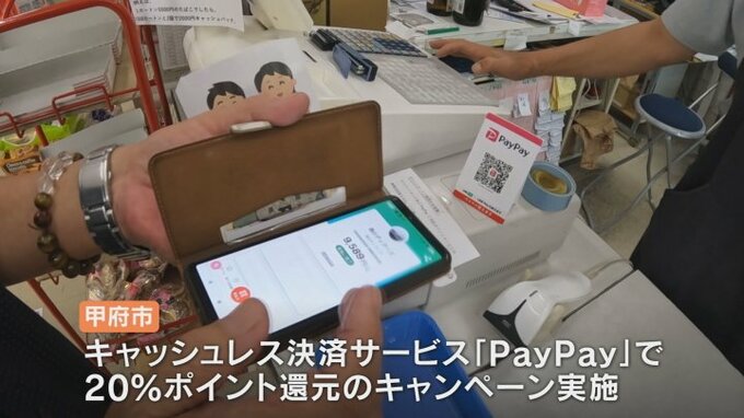 甲府市は市内の店舗でキャッシュレス決済サービスのPayPayによる支払いをした人に20%ポイント還元するキャンペーンを実施。