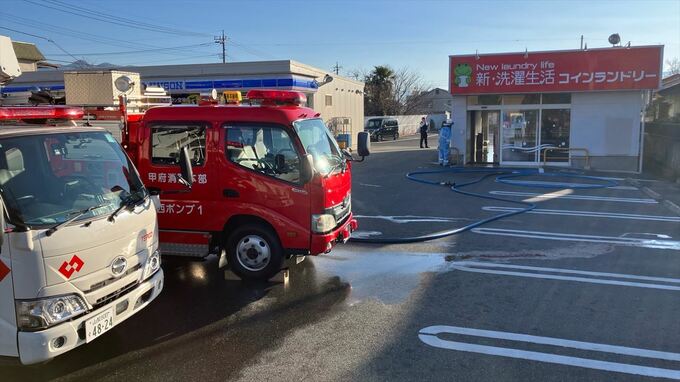 消防によりますと午前7時50分ごろ、甲斐市富竹新田のコインランドリーで、利用者から「機械から煙が出ている」と通報がありました。