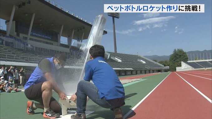 最後には、子どもたちが作ったものよりタンクの容量が8倍も大きい巨大なペットボトルロケットも飛ばされました。