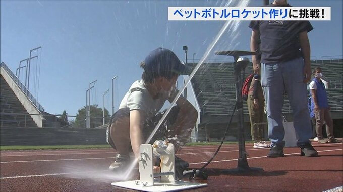 そして、1.5ℓサイズのペットボトルを使い、水と空気で飛ぶロケットを制作。