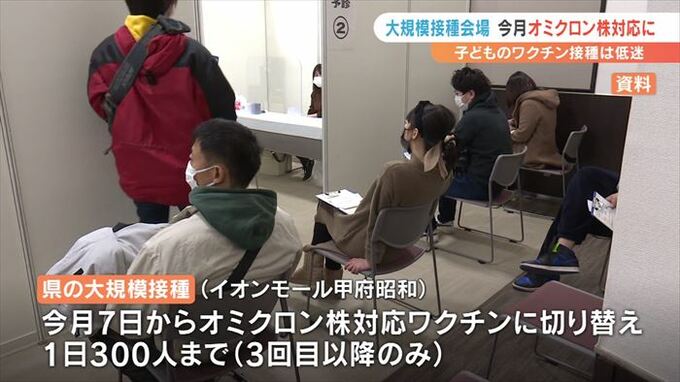 県はイオンモール甲府昭和で大規模接種を行っていて、3日の県議会で10月7日の接種からオミクロン株対応ワクチンへと切り替える事を明らかにしました。