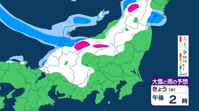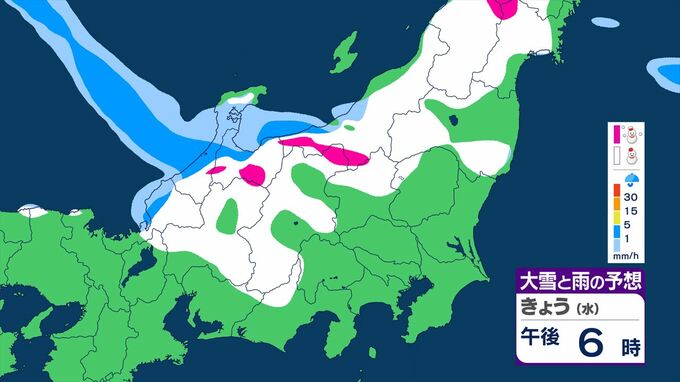 30日の大雪と雨のシミュレーション(午後6時まで 2時間ごと)