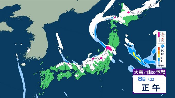 【大雪情報】8日頃にかけ北日本~西日本で大雪や暴風雪、高波に警戒 普段雪の少ない太平洋側でも内陸を中心に大雪となり、平地でも積雪となる所がある見込み【大雪と雨のシミュレーション】 2025年2月5日(水) 11:30 国内 天気