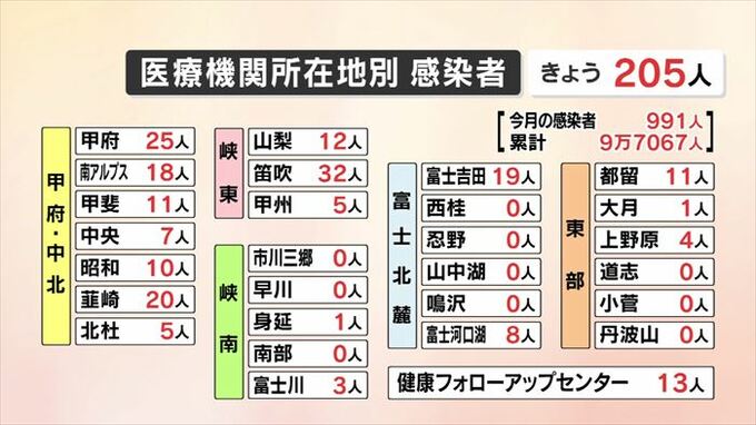 新型コロナウイルスについて、山梨県内では10月6日、新たに205人の感染が発表されました。
