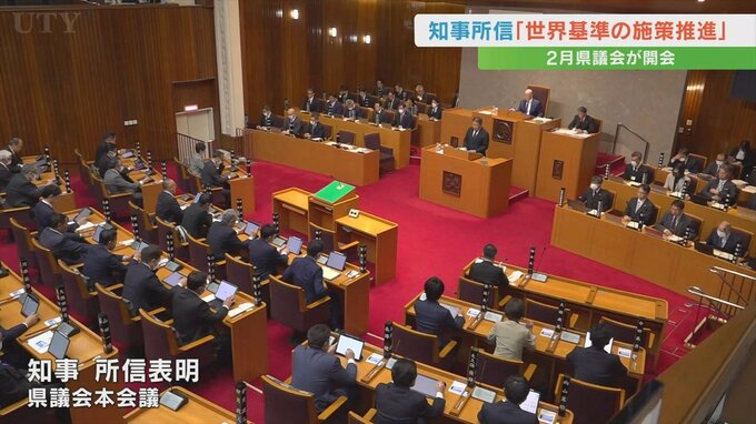 2月定例県議会が開会し、所信表明で長崎知事は新年度の決意として世界基準での施策推進を目指すと述べました。