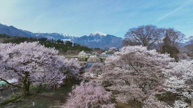 北杜市武川町の実相寺の山高神代桜は日本三大桜のひとつで樹齢は2000年、国の天然記念物に指定され開花時期には全国の各地から大勢の人が訪れます。