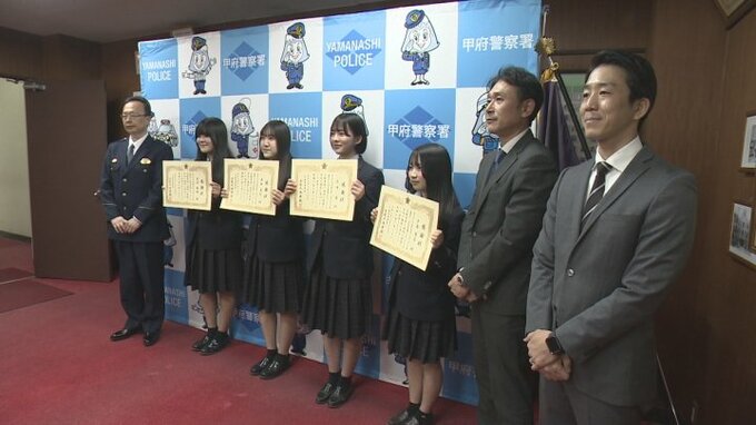 甲府警察署は「男性を適切に保護して安全を確保した」として、19日、4人に感謝状を贈りました。